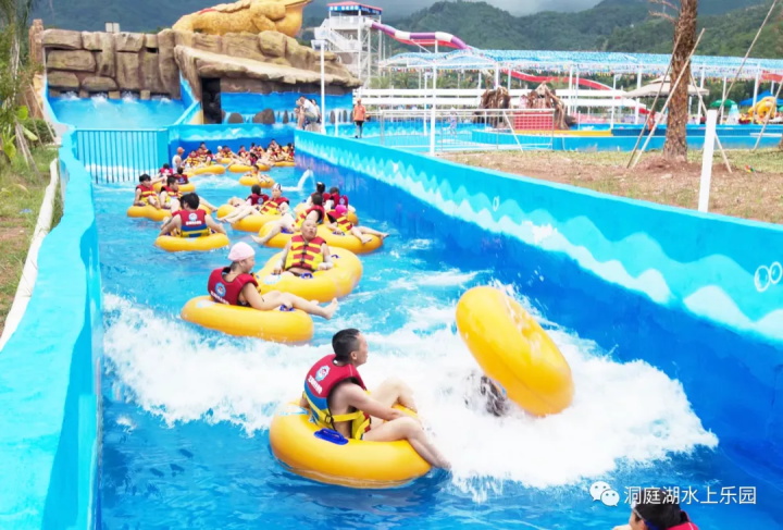 洞庭湖水上乐园属洞庭湖欢乐世界二期项目,位于岳阳君山区旅游路,三面濠河环绕,邻近美丽的国家5A景区君山岛,海山游乐提供规划设计和全部水上游乐设备制造安装服务。整个园区运用欢快色彩,突出水主题,增加儿童设施融入场景,设备包括极速滑道、儿童冲天回旋滑道、大喇叭、造浪池、高速滑道、旱地喷泉、喊泉等。