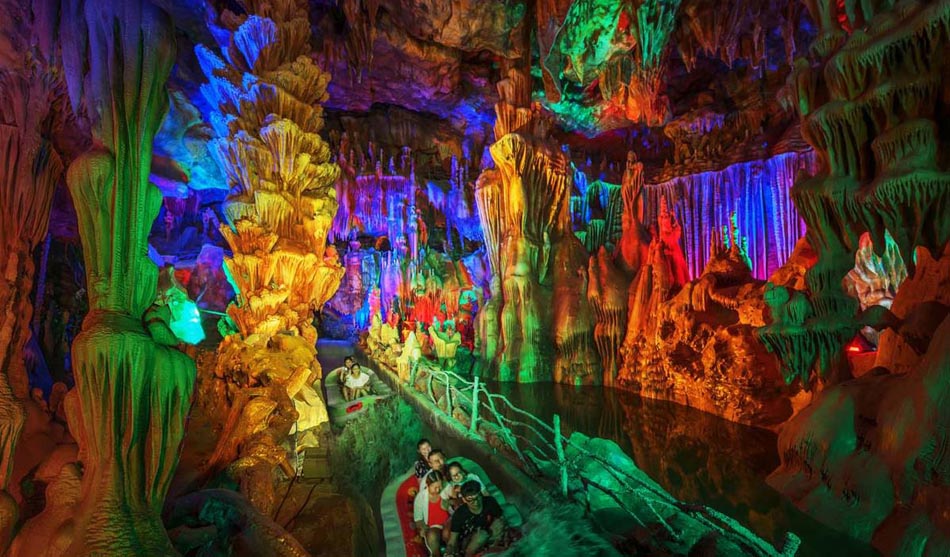 中华洞天旅游区位于李白故里——四川省江油市,距离城区12公里处的含增镇境内,集溶洞观光和洞天漂流于一体。旅游区内共有16大景区,分奇石、奇景、奇漂、奇情四大特色,景点多达720处,总游览长度6000余米,面积30余万平米。“溶洞观光,举世无双”洞内乳石雄伟、气势恢宏、色彩斑斓、奇幻迷离, 30余米高的石笋石柱数十个,18000余平米的“天宫水府” 极具震撼观感更是举世无双。