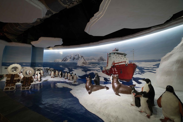 南京海底世界位于南京市玄武区中山陵梅花山旁,是融科普教育、观赏娱乐为一体的大型海洋生物展示工程,由中国与新加坡合作建设,引进澳大利亚先进技术。南京海底世界有200余种,10000多尾海洋鱼类,2只来自南极的帝企鹅,10余只温带企鹅,并有北极熊、北极狐、海豚海狮等海洋哺乳动物。南京海底世界拥有180度亚克力透明玻璃构成的隧道,长74米,宽3米,高2.4米,储水量4000多吨,其中生活着百余种海洋鱼类。