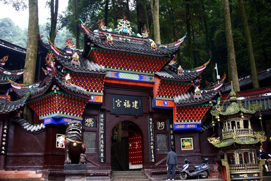 青城山风景区位于四川省成都市都江堰市西南,是中国首批公布的风景名胜区之一,国家AAAAA级旅游景区,距成都市区68公里,距都江堰市区16公里。青城山靠岷山雪岭,面向川西平原,群峰环绕,状若城廓;林深树密,四季常绿;丹梯千级,曲径通幽。全山以幽洁取胜,与剑门之险,峨眉之秀,夔门之雄齐名。景区大门前坐索道上观音阁,再上山是上清宫,老君阁,观音阁下走是景区外有圆明宫(圆明宫道家辟谷养生研修院,白云观,玉清宫景区,但圆明宫、白云观、玉清宫都不是在景区内。